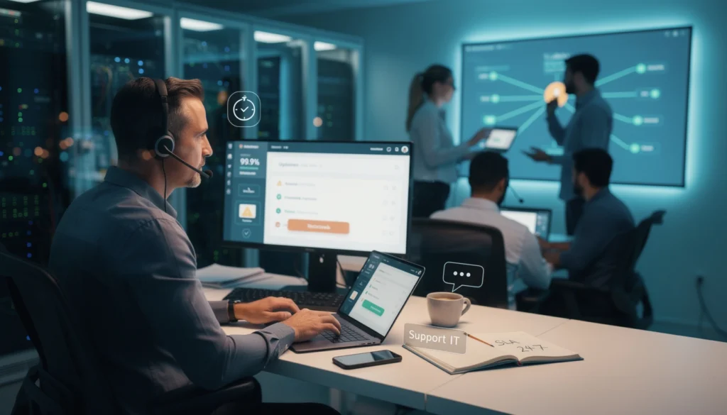 Le temps de réponse est le délai que met le prestataire d’infogérance informatique à répondre à vos demandes. Ce critère influence directement la continuité de service et la sécurité de votre activité. Certains prestataires, tels qu’Atixit, valorisent une approche fondée sur des niveaux de service (SLA) clairement définis pour garantir des interventions rapides et mesurables.